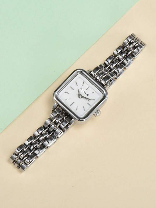 Relógio Prata De Quartzo Com Ponteiro Quadrado
